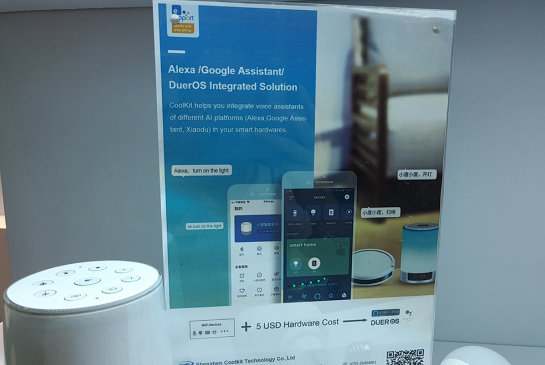 酷宅科技還推出了低成本的語(yǔ)音助手內(nèi)置方案。對(duì)于一般的智能硬件來(lái)說(shuō),只要再增加5美金以內(nèi)的硬件成本,即可搖身變成擁有“聽(tīng)覺(jué)”的產(chǎn)品??嵴萍嫉腁lexa/Google Assistant/DuerOS內(nèi)置硬件方案能夠讓傳統(tǒng)設(shè)備直接內(nèi)置語(yǔ)音助手,就算沒(méi)有音箱的輔助也可以進(jìn)行語(yǔ)音控制。
