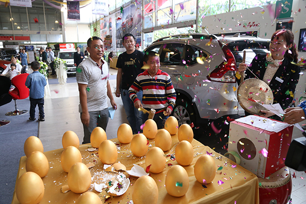 在此次活動中,實田4S店為所有成功購車的顧客準(zhǔn)備了砸金蛋活動,只要是報名參與本次活動并成功購車的的網(wǎng)友均能從活動中收獲各種精美的禮品,到場顧客參與程度異?;鸨?/p>