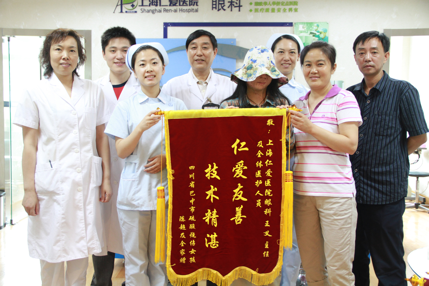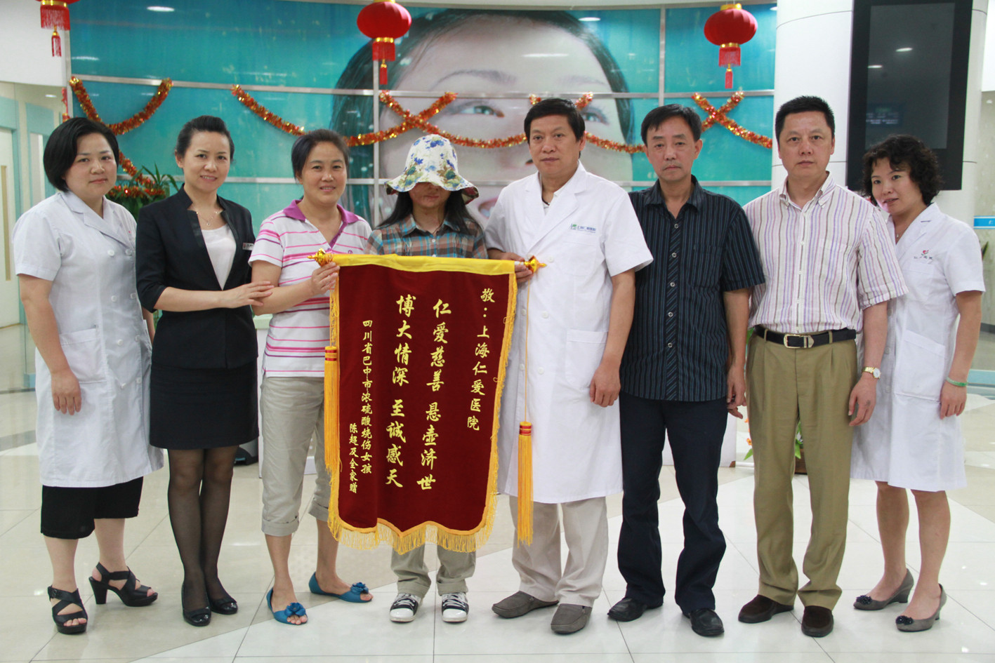 上海2011年7月13日電 /美通社亞洲/ -- 日前,今年初曾由中央電視臺作專題訪問、遭強硫酸毀容的四川女孩陳超及家人來到上海仁愛醫(yī)院,并給關(guān)心她的人們帶來了一個好消息:通過北京中國兒助會了解到陳超的不幸遭遇和感人故事后,美國波斯頓一家整形整容醫(yī)院愿意為陳超做免費的整形手術(shù),她將在近日赴美國繼續(xù)接受治療。行前,她親手將感謝的錦旗送到上海仁愛醫(yī)院,陳超的父親還代替她書寫了一封感謝信,來表達(dá)她們?nèi)已灾槐M的謝意。