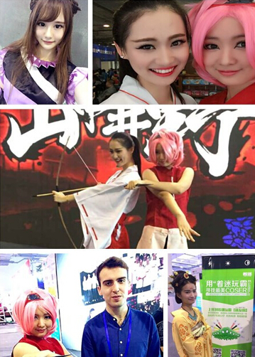 著迷嘉年華現(xiàn)場(chǎng),除了正版游戲、互動(dòng)抽獎(jiǎng),還有超萌火影小櫻Coser,還能看到《犬夜叉》里桔梗、《劍三唐門》里萬(wàn)花蘿莉等。靚麗的Coser在各個(gè)游戲環(huán)節(jié)和玩家都有互動(dòng),與Coser合影也是觀眾一大愛好。(現(xiàn)場(chǎng)活動(dòng)照片)