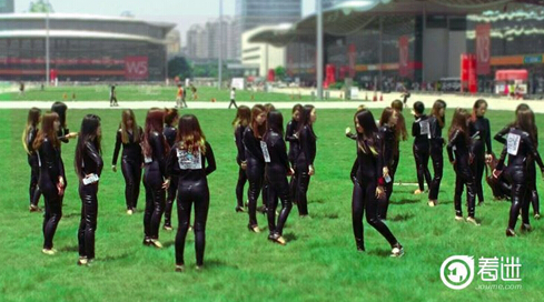 7月30日,CJ開展第一天,由41位著迷Showgirl組成的大型人體拼圖,擺出育碧《Just Dance》游戲字母圖案,震驚CJ現(xiàn)場,航拍器清楚地拍攝了俯視圖,被眾多門戶收錄在CJ圖集中。