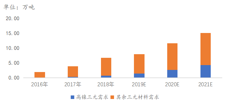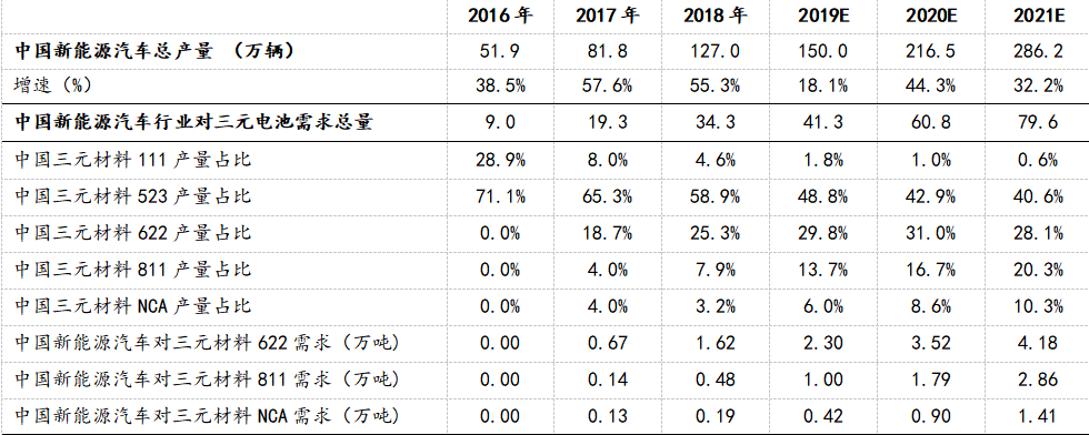 表:2016-2021年鋰離子電池對(duì)三元材料的需求量