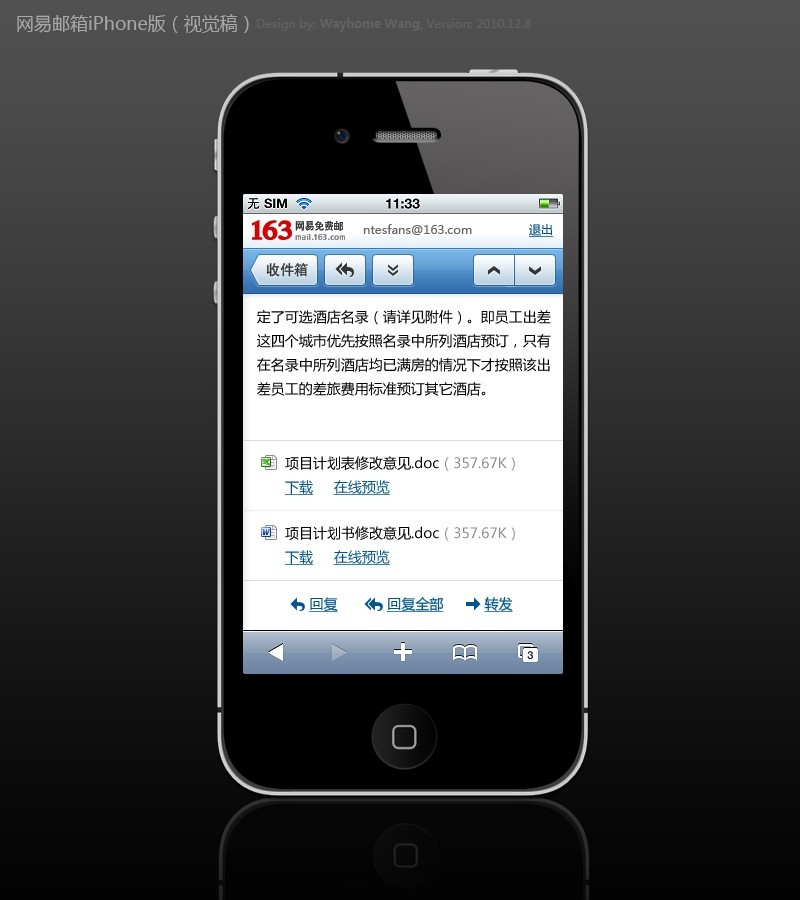 在開發(fā)技術上,網易郵箱手機智能版則與適配 iPad 版一脈相承,使用這兩年新興的前端技術HTML5+CSS3 開發(fā),有效減少對手機緩存的占用,提高收發(fā)郵件速度。