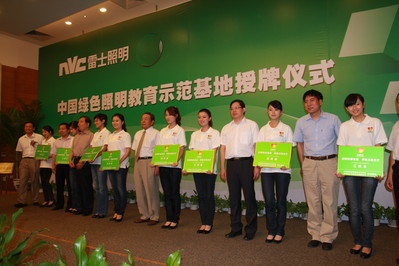 當(dāng)天上午,為了做好綠色照明推廣和教育宣傳工作,向公眾深入傳播和普及綠色節(jié)能照明理念,現(xiàn)場(chǎng)主辦方還舉辦了“雷士照明光明行八省支教及照明產(chǎn)品捐贈(zèng)儀式,國家發(fā)改委、國務(wù)院機(jī)關(guān)事務(wù)管理局、國家節(jié)能中心、北京節(jié)能環(huán)保中心、“逐步淘汰白熾燈、推廣節(jié)能燈”項(xiàng)目辦、中國節(jié)能協(xié)會(huì)等領(lǐng)導(dǎo)以及雷士照明董事長(zhǎng)吳長(zhǎng)江,一同上臺(tái)向雷士光明行八省支教志愿者頒發(fā)了愛心支教牌匾,宣告雷士“2011全國八省支教愛心及捐贈(zèng)節(jié)能照明產(chǎn)品活動(dòng)”正式啟動(dòng)。