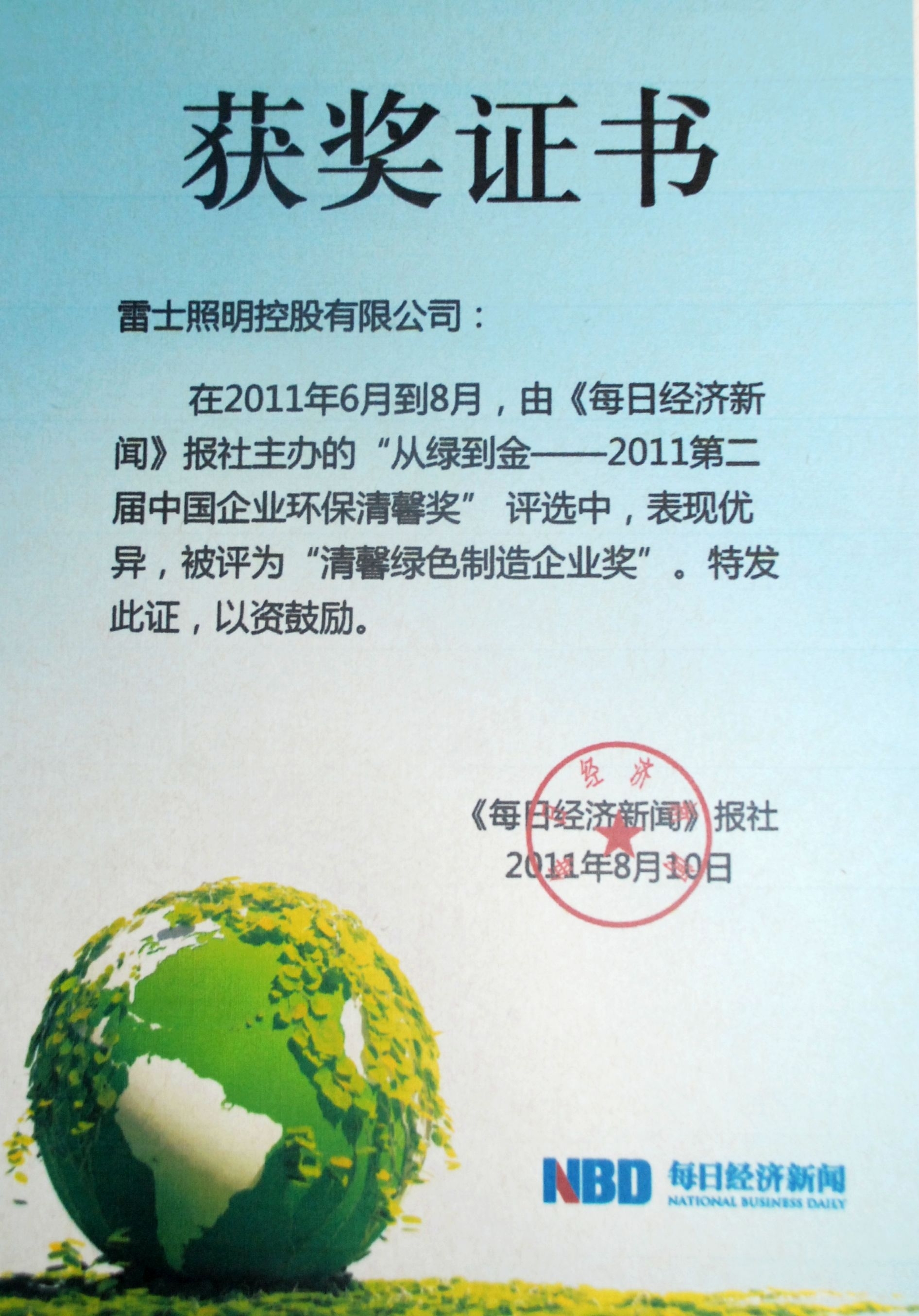 當(dāng)前,能源和環(huán)境危機(jī)是全世界共同面對(duì)的課題,而照明節(jié)能是非常重要的部分,據(jù)統(tǒng)計(jì),照明消耗中國總發(fā)電量達(dá)到13%。發(fā)展綠色照明、低碳經(jīng)濟(jì)成為政府和社會(huì)共同努力的發(fā)展方向。雷士照明此次榮獲中國企業(yè)環(huán)保清馨獎(jiǎng),這是主辦方對(duì)雷士照明在發(fā)展綠色照明、推廣節(jié)能環(huán)保產(chǎn)業(yè)所貢獻(xiàn)的肯定。