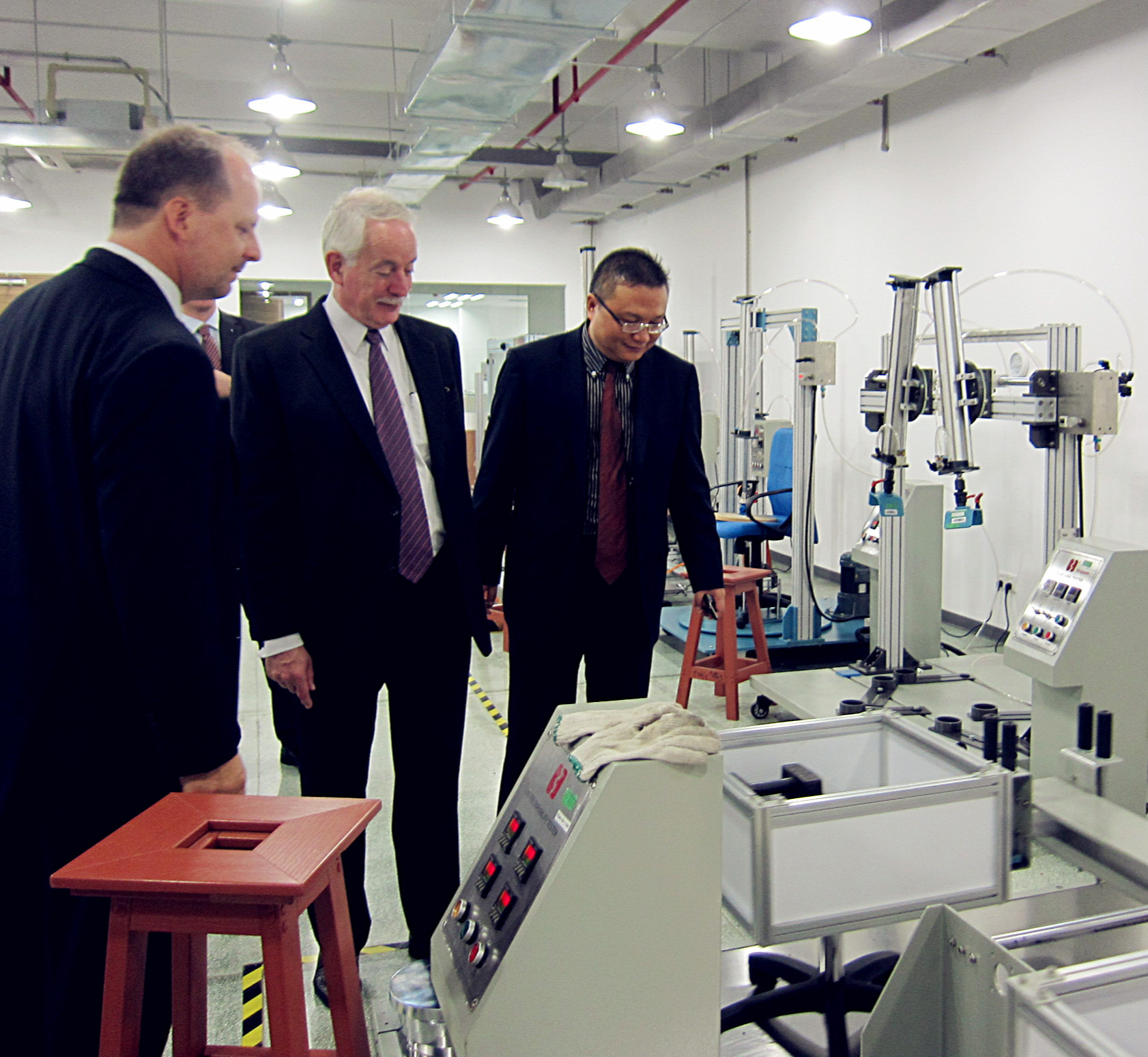 當天上午,TUV SUD 副總裁 Mr. Wolfgang Hubl 與廣州分公司總經(jīng)理黃力坤先生在廣州慕尼黑會議室親自為德國領(lǐng)事 Mr. Stefan Gallon 及其同事介紹 TUV SUD 的服務與合作項目。隨后,由黃力坤先生與 TEC 實驗室經(jīng)理郭大軍先生帶領(lǐng)德國領(lǐng)事 Mr. Stefan Gallon 及其同事參觀廣州分公司的辦公區(qū)和實驗室,特別是今年6月新建的制冷實驗室,該實驗室專業(yè)為空調(diào)、熱泵及冷凍冷藏產(chǎn)品提供檢測,并于2011年中成功申請了中國國家認可實驗室 CNAS,德國 ZLS 審核和美國能源之星服務認可,由此 TUV SUD 可以按歐洲、美洲、澳洲等國家和地區(qū)電器安全和性能標準提供檢測服務,進一步提升 TUV SUD 在制冷行業(yè)的影響力。