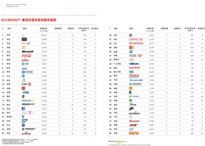 盡管2011年世界經(jīng)濟(jì)仍處在掙扎中,50強(qiáng)品牌的總市值增長(zhǎng)16%達(dá)到了3250億美元,略高于中國(guó)經(jīng)濟(jì)的5%。