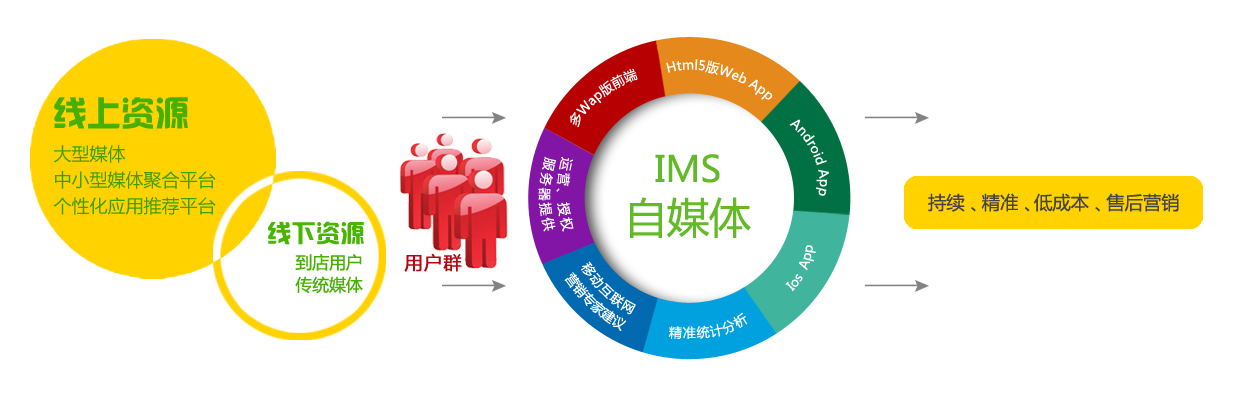 IMS系統(tǒng)的優(yōu)勢在于,其首先能給企業(yè)增加新用戶的上游資源引入,并能將引入資源轉(zhuǎn)化為會員,繼而進行持續(xù)、精準、低成本的企業(yè)“自媒體”平臺營銷;同時,該系統(tǒng)還能提供專業(yè)的托管、運營、統(tǒng)計報告、專業(yè)營銷指導(dǎo)等服務(wù),為企業(yè)提供一套上中下游整體營銷服務(wù)體系。