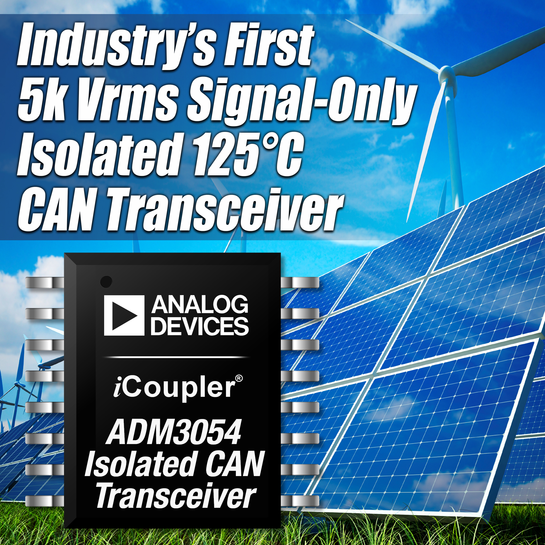 -- 高集成度 ADM3054 CAN 收發(fā)器采用 ADI 公司的 iCoupler® 數字隔離器技術進行信號隔離,同時減少了元件數量和電路板空間