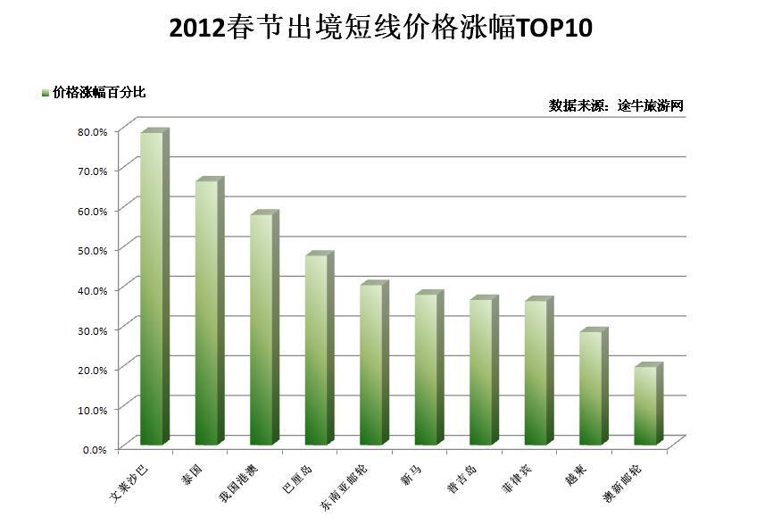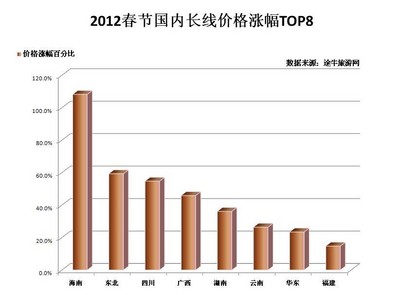 國(guó)內(nèi)游方面,華北、海南、四川等熱門方向漲幅也不容小覷,如上海出發(fā)至四川方向的雙飛6日線路,全年平均價(jià)格在2500元左右,春節(jié)期間價(jià)格在4000元左右;上海至華北方向的春節(jié)價(jià)格漲幅也在1000-2000元不等?!敖衲甏汗?jié)上海市民出境游相對(duì)明顯,去往海南方向的人數(shù)占比較春節(jié)前倒是略有下降,這與上海市民較為成熟的出游觀念是分不開的,錯(cuò)峰出游,避開熱門方向的最熱時(shí)段,能夠更好地享受旅游目的地的服務(wù)和風(fēng)景,”途牛旅游網(wǎng)工作人員建議市民在選擇旅游目的地時(shí),如有條件盡量避開“人潮洶涌”的過(guò)熱方向。