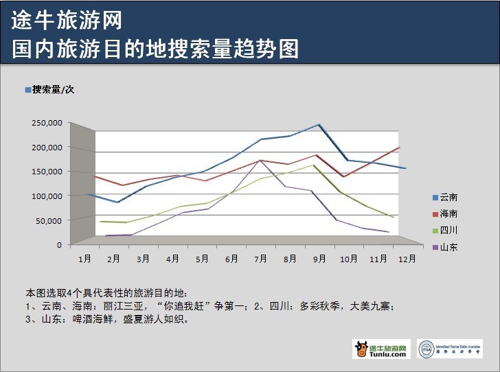 北京和上海2012年2月20日電 /美通社亞洲/ -- 近日,途牛旅游網(wǎng)與國(guó)際旅游學(xué)會(huì)聯(lián)合發(fā)布了《2011年度熱門目的地分析報(bào)告》,報(bào)告數(shù)據(jù)基于全國(guó)消費(fèi)者在途牛旅游網(wǎng)對(duì)熱門目的地的搜索及咨詢預(yù)訂數(shù)據(jù),分析報(bào)告數(shù)據(jù)顯示,“海島”穩(wěn)居年度全國(guó)消費(fèi)者出游榜首;暑期、國(guó)慶黃金周形成消費(fèi)者出游峰值,出游淡旺季區(qū)分明顯。