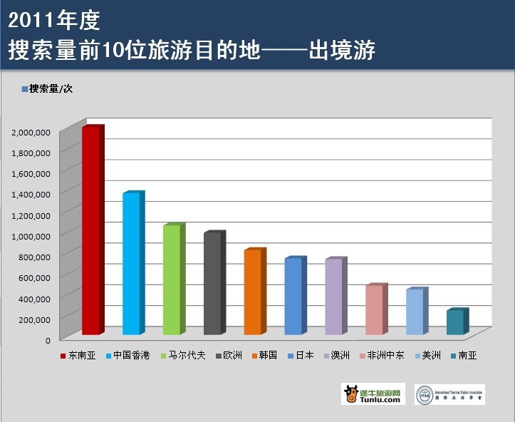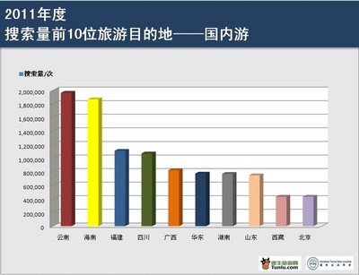《2011年度熱門目的地分析報(bào)告》數(shù)據(jù)顯示,在熱門目的地大方向下,各具體方向受關(guān)注程度落差較為明顯。