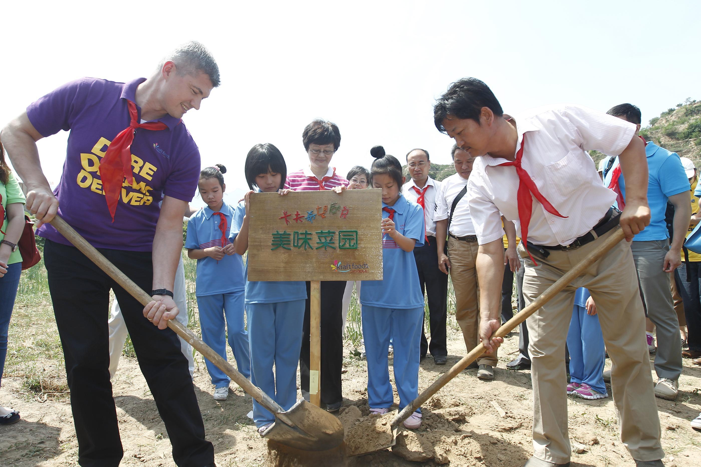 2011年8月,“卡夫希望廚房”在孫莊子中心福和希望寄宿學(xué)校投入使用,讓該校近400名學(xué)生吃上了衛(wèi)生、營養(yǎng)的熱飯菜。今天,卡夫食品的志愿者回訪該校,并開辟了“卡夫希望廚房美味菜園”??ǚ蚴称分袊偛眯ざ?middot;沃倫(Shawn Warren)說到,“看到‘卡夫希望廚房’給孩子們膳食營養(yǎng)帶來的改變,我們感到十分欣慰?!牢恫藞@’完全建成之后,可以滿足學(xué)校400名學(xué)生近50%的蔬菜和肉類的需求。同時(shí)我們希望,孩子們通過在菜園中上勞動(dòng)課,可以體會(huì)到勞動(dòng)的快樂,通過自己的雙手創(chuàng)造美味。更令人興奮的是,在張家口地區(qū)還將有8所‘卡夫希望廚房’在今年秋季開學(xué)前建成并投入使用,又將有1700多名小學(xué)生也能吃上衛(wèi)生營養(yǎng)的熱飯菜?!?/p>