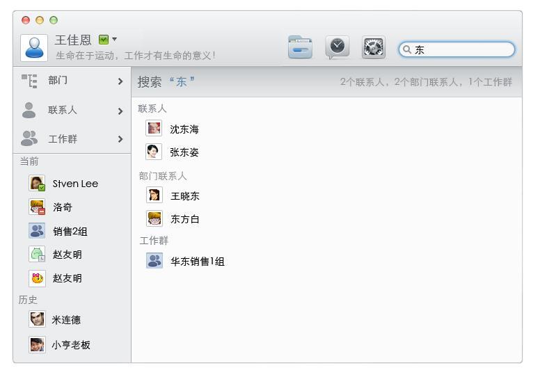 網(wǎng)易即時(shí)通在產(chǎn)品設(shè)計(jì)上秉承高效、易用、易管理的理念,同時(shí)需要兼顧到操作系統(tǒng)本身的特性,此次發(fā)布的網(wǎng)易即時(shí)通Mac版也同樣如此。在方便企業(yè)高效溝通方面,網(wǎng)易即時(shí)通Mac版進(jìn)行了多項(xiàng)微創(chuàng)新,如 Mac版的一體化窗口設(shè)計(jì),可以將組織架構(gòu)等列表與聊天窗口緊密結(jié)合,并將“最近聯(lián)系人”分解為“當(dāng)前”和“歷史”列在主窗口左側(cè),讓用戶能夠更便捷地在窗口上直接定位與自己聯(lián)系過(guò)的同事,節(jié)省日常辦公溝通時(shí)查找聯(lián)系人的時(shí)間;網(wǎng)易即時(shí)通還支持聯(lián)系人的全局性搜索,一次搜索即可在多個(gè)列表中找到含有搜索關(guān)鍵字的所有聯(lián)系人;網(wǎng)易即時(shí)通管理后臺(tái)可管理的客戶端范圍不僅僅是較多用的Windows版本,還包含iPad、Mac平臺(tái)上的版本以及將要推出的手機(jī)版。