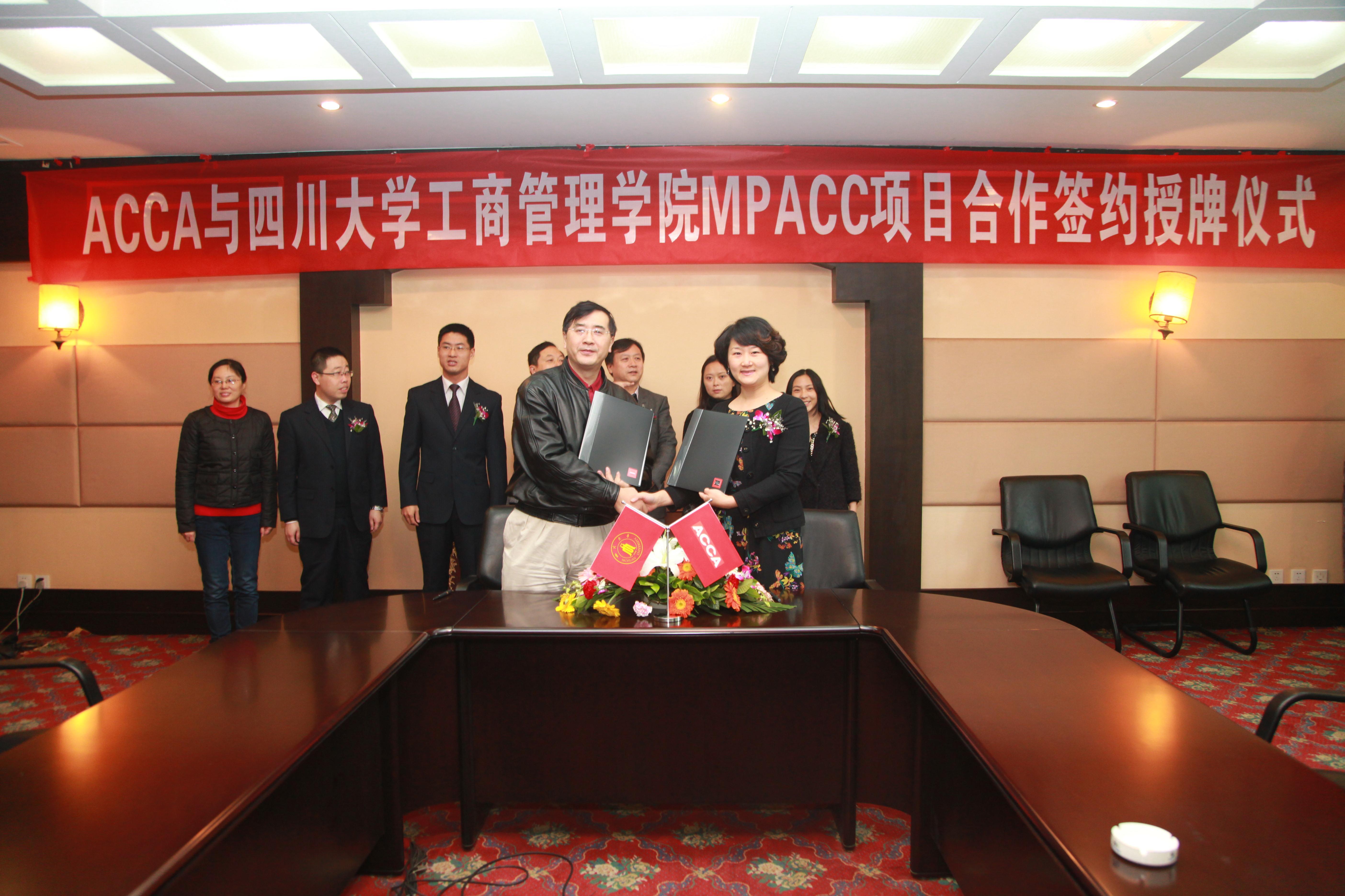 上海2012年11月12日電 /美通社/ -- ACCA(特許公認(rèn)會計(jì)師公會)與四川大學(xué)工商管理學(xué)院近日簽署協(xié)議深化合作,授予四川大學(xué)工商管理學(xué)院為ACCA與MPAcc合作培養(yǎng)中心,共同培養(yǎng)國際化高級財(cái)會人才。