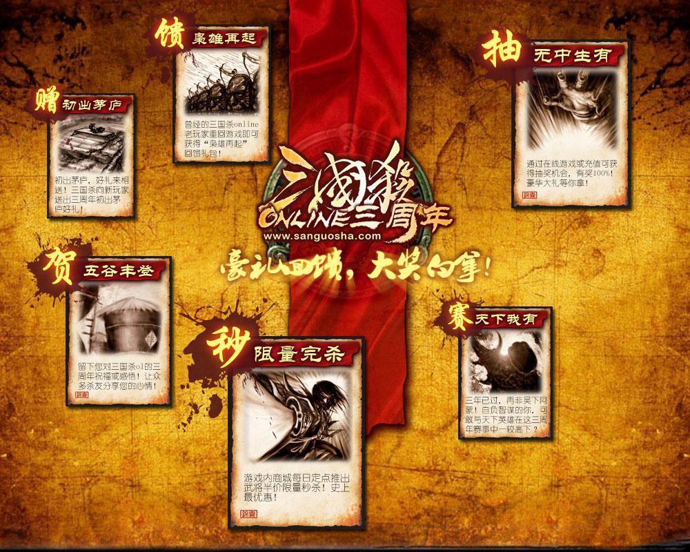 末日后的瘋狂,《三國(guó)殺OL》三周年慶典,豪禮回饋,大獎(jiǎng)白拿。不僅有給力活動(dòng),讓玩家游戲中樂趣多多,還有實(shí)物好禮,讓玩家拿獎(jiǎng)拿到手軟。