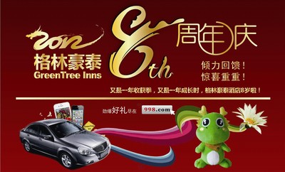 上海2013年1月8日電 /美通社/ -- 格林豪泰酒店管理集團(以下簡稱“格林豪泰”)慶祝公司成立八周年,為感謝廣大客人多年來的關注與支持,推出“百萬豪禮感恩反饋”活動,最后特等獎 -- 價值十萬余元的轎車將于2013年1月份擇日抽取。