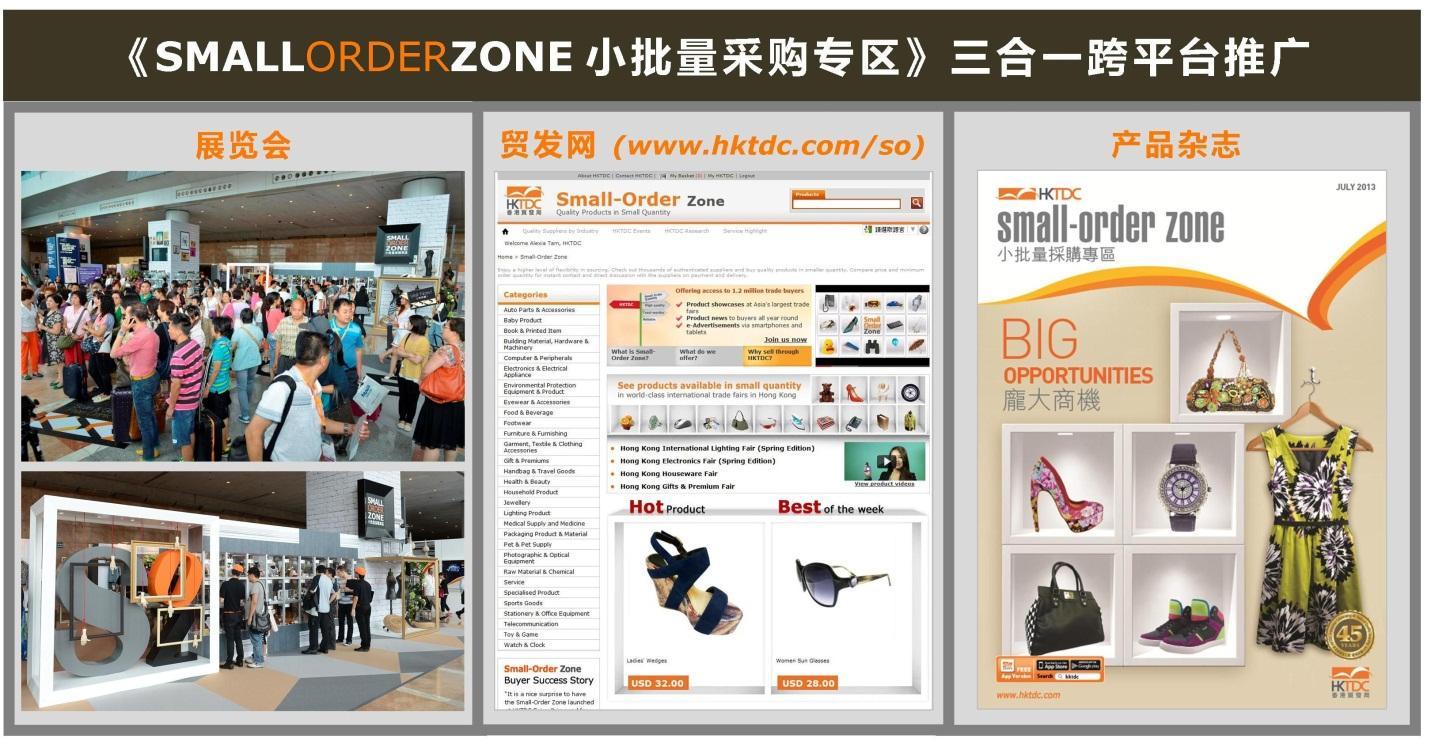 供應商透過展覽會密集式接觸買家;而展覽會后的推廣,則全年不間斷地進行。買家可登入貿(mào)發(fā)局的電子商貿(mào)平臺「貿(mào)發(fā)網(wǎng)」,在小批量專區(qū)(www.hktdc.com/so)搜尋供應商或產(chǎn)品,又或者透過該局出版的產(chǎn)品雜志繼續(xù)采購。結(jié)合書、網(wǎng)、展三大平臺的《小批量采購專區(qū)》,突破地域和時間限制,產(chǎn)生終年無休的協(xié)同效應。
